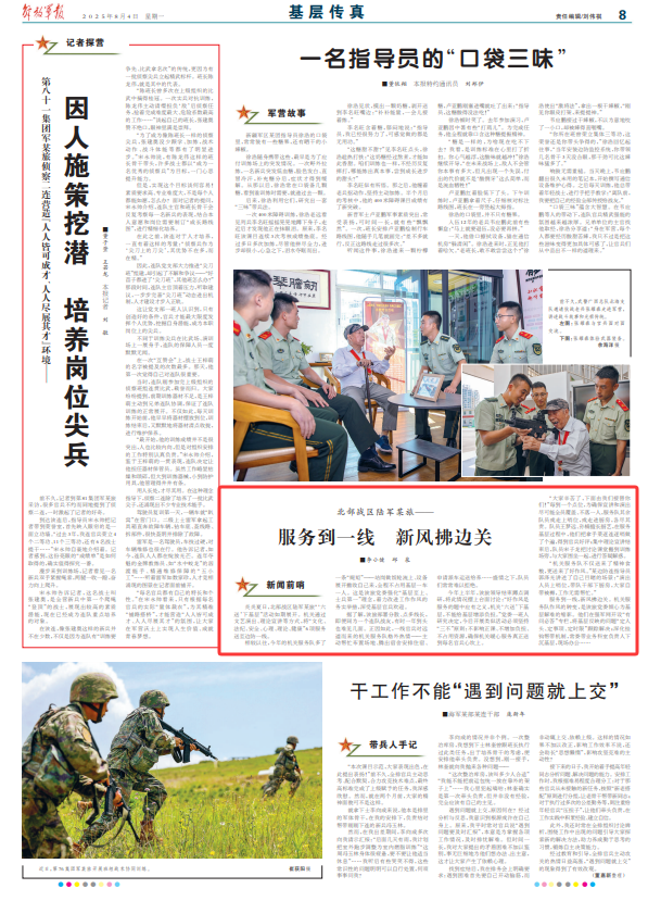 北部剧院司令部的一个陆军旅 - 前线的服务,新鲜空气在边境上爆炸■李小吉安Qiu在热热的热处,“向北部剧院司令部旅的当地人进行的“六份交付”活动是计划发射的。该机构通过文学文学和理论讲道向边境防御的前线发送了六项“文化,法律,安全,心理学,理论和健康”的服务。与过去相比,今年的代理商服务团队还有一个额外的“规则” - 远离厨师,并让设备自己恢复,并且在整个过程中不占领一辆汽车或某人处于土著人的水平。这是旅党委员会的一项务实的提议,旨在加强“基层首先,士兵首先”的概念,并努力改善工作风格。 Ithis在基层和士兵官员中非常受欢迎。据了解,旅已经扩散了部署,很多要点和NG线。尽管他们都是同一家公司的同伴,但有时很难每年见面几次。结果,前线和士兵的官员对远处的服务团队特别热情 - 积极帮助修复该地区,宿舍可以自由调整住所,并申请将汽车送往运输用品...在暖气中,团队成员通常很难下降。在今年的上半年,旅领导人完成了对网站的调查,并将这种情况放在桌子上讨论:“良好的工作风格是必要的服务意义。“六个派遣机构”在本地级别上增加了PAS PAS的“六个派遣机构”。一群来自党委员会的人所研究的人,并且在将来不再遵守“三个原则”,并且不再遵守“不再构成”的阶级,并且不仅会增加“不及时”的范围。真正地送给了每个军官和你的心。”重点,为了确保尽可能多地涵盖演讲和演讲,服务组的其余部分将进入厨房或进入Kitcheng集中的理论采访,团队成员Song Zilong移动了课堂讨论课,并与所有人坐下来回答问题并解决问题。 “该机构的服务团队不仅带来了精神上的食物,而且带来了良好的工作风格。”边境国防公司的导师郭Zeguang告诉现场,他目睹了:“表演者去了哨所,带领球队在厨房里的干部。每个人都带来了自己的床,不再需要工作援助。”服务在前线,新鲜空气吹向边界。该机构服务小组风格的变化是旅党委员会的缩影,该委员会提供了解决土著水平的缩影。他们在Qiangjun.com上打开了一个“问答”专栏rmine负责人,确定对象并设定时间限制。