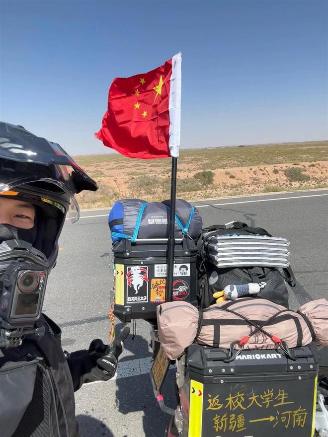 卡拉梅(Karamay)的年轻人走了3500公里,向郑州大学报告。他离开并参加了军队,去年回到学校。每次他骑行时,他都会将国旗悬挂在自己的身上。