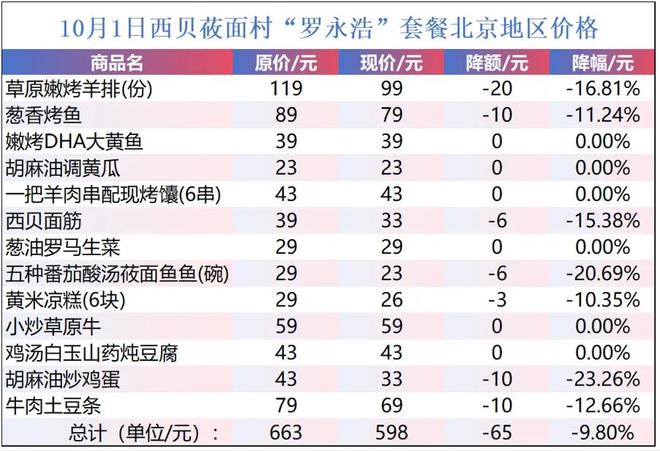 Xibei急剧降低了价格,“ Luo Yonghao套餐”减少了