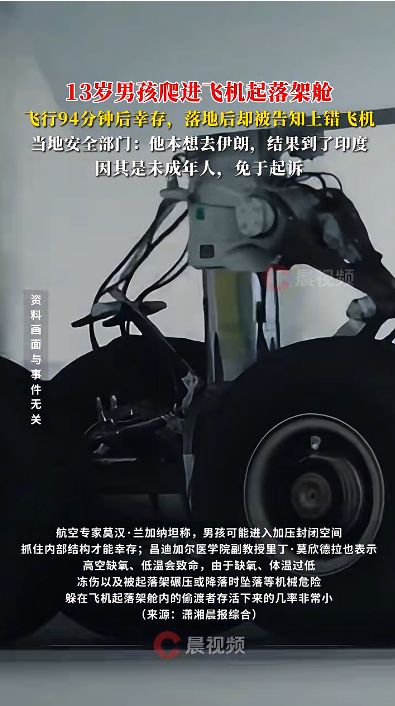 一个13岁的阿富汗男孩登上飞机并拍打它。经过94分钟的飞行后,揭示了细节:他骑行时藏在液态飞机舱中。他想去伊朗登上错误的飞机并到达印度