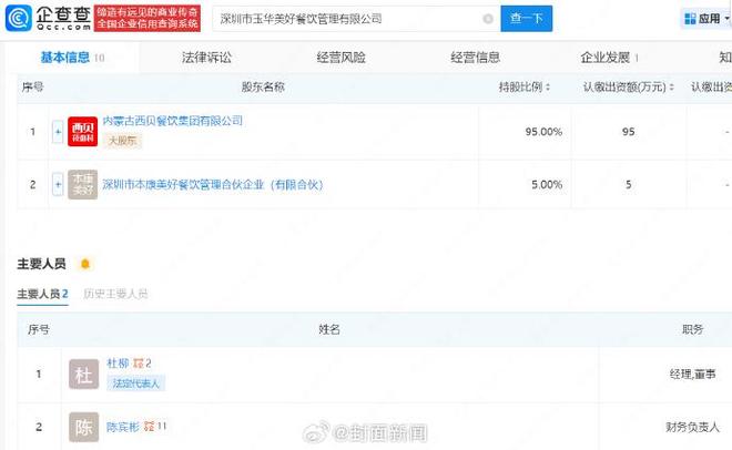 西贝百万投资成立新餐饮公司:新西贝公司包含